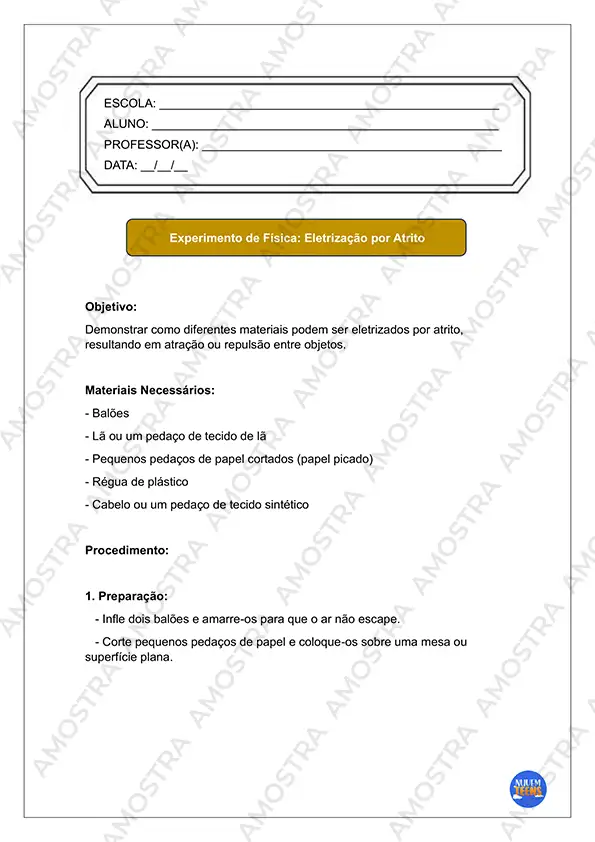 Conheça o kit que irá mudar sua rotina na sala de aula. São 10 páginas de Atividades com Experimentos de Física para o Ensino Médio com cabeçalhos editáveis em Word!
