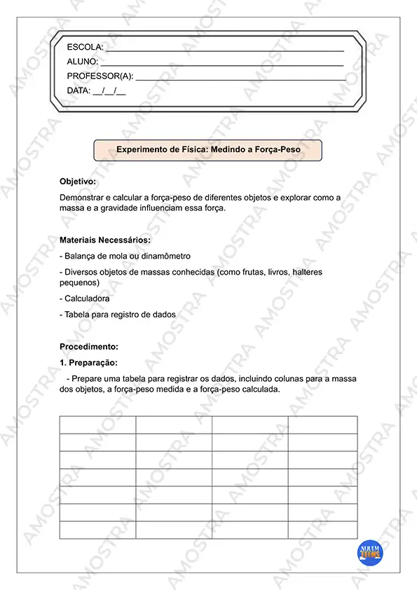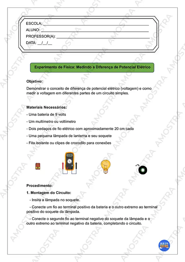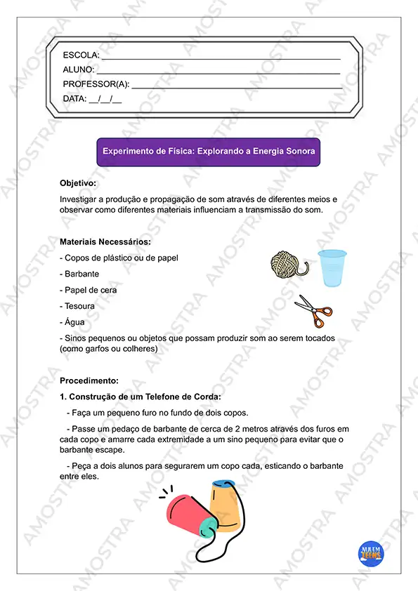 Você irá receber 10 páginas de Atividades de Experimentos de Física com cabeçalhos editáveis em Word…