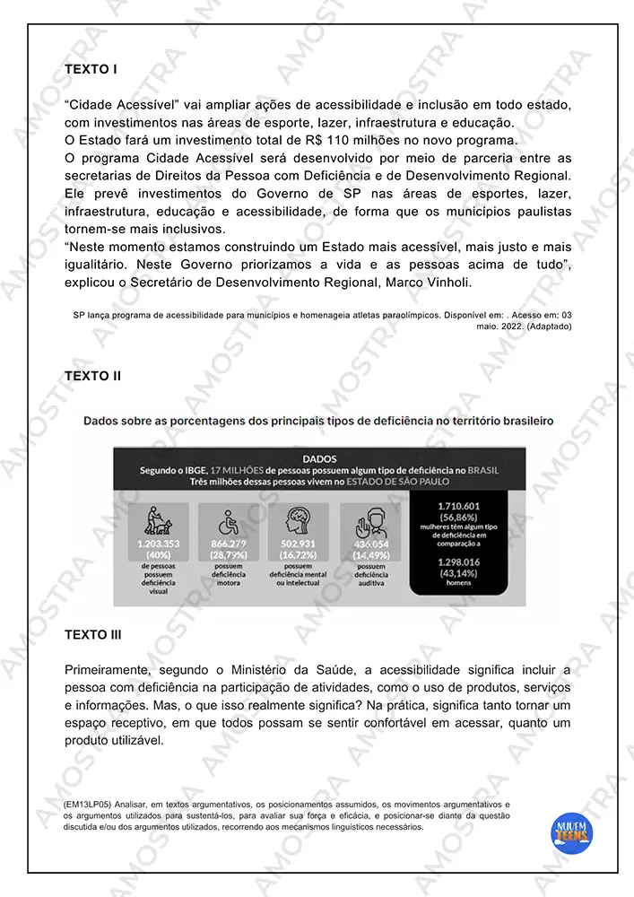 Você irá receber 200 páginas de Propostas de Redação contendo textos explicativos e códigos das habilidades para todas as atividades…